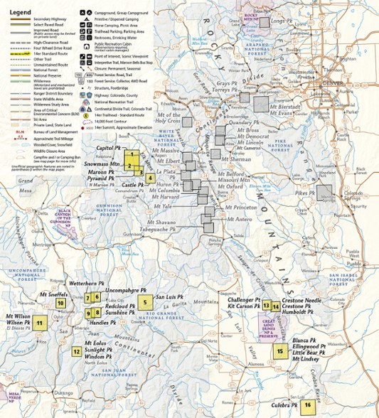 Epic Colorado 14ers Poster Guide 14 Best Colorado 14ers Map Options