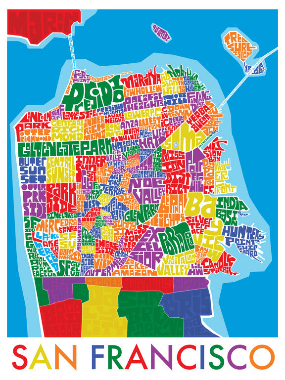 San Francisco Neighborhood Type Map – LOST DOG Art & Frame